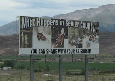 Beautiful country and wonderful people, at least from the few times I've overnighted in Richfield, the county seat. I've fantasized, though, about adding another panel to the billboard, a side shot of an old guy sitting on a toilet. Because EVERYTHING that happens in Sevier County you can share with your friends...